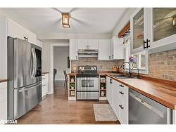 Turn the page on your next chapter and the lifestyle you've been dreaming of with this stunning two-story home in sought-after Horseshoe Valley. Offering over 2,500 square feet of beautifully finished living space, every detail has been thoughtfully updated, from the renovated kitchen, featuring striking butcher block counters, to the stylishly renovated powder room. The main floor showcases rich hardwood flooring and a convenient laundry room, while updated windows, siding, and new garage doors provide peace of mind and lasting value. Upstairs, you'll find three spacious bedrooms and two fully renovated bathrooms, including a luxurious primary suite with a walk-in closet and private ensuite. A five-piece main bath completes the upper level, offering comfort and convenience for family and guests. The fully finished basement, complete with an egress window, adds versatile living space for recreation or extended family needs. Set on a private third of an acre estate lot with no neighbours behind, this home provides a true sense of retreat. Outdoor living shines with a sparkling pool, relaxing hot tub, cozy fire pit, and plenty of room to entertain or unwind. Prepare to fall in love. Meticulously maintained and move-in ready, this home is perfect for a busy family with discerning taste. No stone has been left unturnedcome see for yourself, you won't be disappointed.