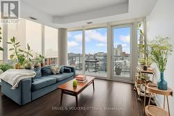 Welcome to Suite 807, a sleek and modern 2 bedroom, 2 bathroom corner suite offering 986 sq.ft. of thoughtfully designed living space in the heart of Ottawa's vibrant Little Italy. This sun-filled suite features floor-to-ceiling windows and two southeast-facing balconies, one off the open concept living and dining area and another off the spacious primary bedroom, perfect for enjoying morning light and sweeping views. The kitchen is both functional and stylish, with built-in appliances including an integrated fridge and freezer and a large island ideal for cooking, dining or entertaining. Both bedrooms are generously sized, and the suite includes two full 4-piece bathrooms, each featuring a 2-piece shower. Living here means being just steps away from vibrant Preston Street, known for its fantastic selection of Italian restaurants, cafes, bakeries, and specialty shops. Enjoy the charm of Little Italy's lively atmosphere, along with easy access to nearby parks, scenic Dows Lake, and excellent public transit options, including the O-Train. The building offers a range of premium amenities, including a fully-equipped gym, pool, hot tub, a movie room for private screenings, a conference room, and an entertainment space with a kitchen, perfect for hosting events or casual gatherings. With modern finishes throughout, this home combines comfort, convenience, and urban living at its best. A floor plan of the suite is attached for your convenience. (id:27)