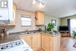 Looking to downsize into a minimal maintenance home and be mortgage free? This unit is cute and cozy in a quiet park in Prince Edward County. Enjoy summer entertaining on the covered deck that runs along the full length of the home. Open concept kitchen / living room with warm and inviting colours running throughout the home. Cathedral ceilings and large windows to keep it light and spacious. The U-shaped kitchen is functional and comes with appliances. 4pc bathroom is conveniently located beside the entrance if out on the deck, and right by the primary bedroom. The Park has saltwater pool to enjoy or go to the club house library. They organize numerous events, ensuring that you will always have opportunities for social engagement. Does this sound like the lifestyle for you. Come one come all. (id:27)