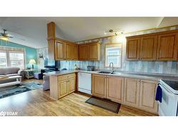 Visit REALTOR® website for additional information.Welcome to a rare offering in the sought-after Mini Lakes community—perfect for those seeking a quiet, low-maintenance lifestyle in a secure, gated neighborhood. This well-maintained year-round bungalow features stunning, uninterrupted lake views—an uncommon find here. Inside, the bright living room with a bay window flows into a spacious eat-in kitchen. With two bedrooms, a full bath, and in-home laundry, the layout is both comfortable and functional. Enjoy outdoor living on the large deck overlooking the water—ideal for relaxing or entertaining. Recent updates include the furnace, A/C, roof, and flooring. Mini Lakes offers a golf-cart-friendly lifestyle with a clubhouse, pool, and regular social events—just minutes from Hwy 401, shopping, and dining.
