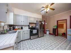 Welcome to this 2-bedroom bungalow! This home offers great potential with a functional layout that includes 2 bedrooms, a full 4-piece bathroom, and an unfinished basement with plenty of space for storage or future development.A standout feature is the 12' x 24' detached workshop, complete with electrical and a wood-burning stove—perfect for hobbies, projects, or additional storage. This property is ready for someone to add their personal touch and transform it into a cozy home.