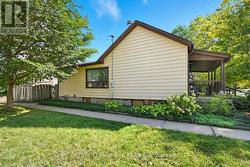 Home sweet home. This sweet, well-kept home on a corner lot in the heart of St. Catharines is ready to move in. New deck, new laminate floors, and a beautiful, low-maintenance garden. Rustic and cozy family room features brick walls, washed-wood ceiling with a brick, corner hearth with wood-burning stove. Extra large primary bedroom (Originally 3 bedroom, could be converted back). The bright kitchen has breakfast bar and easy access to the deck for grilling and relaxing. 200 amp service, pre-inspected, Fantastic, friendly neighbourhood, an absolute gem. (id:27)