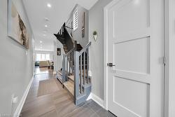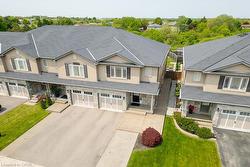 This custom-designed 1,700+ sq. ft. freehold end-unit townhome sits on an oversized lot and offers a perfect blend of style and functionality. The open-concept main floor boasts a spacious dining area with a servery/coffee bar/wine cooler, a bright white kitchen with granite counters and newer appliances, and a stunning great room with an electric fireplace feature wall and custom built-ins—an ideal setting for entertaining.Upstairs, you’ll find a versatile loft, a full main bath, and three bedrooms, including a primary suite with walk-in closet and private 4-piece ensuite. The lower level is unfinished, Step out from the great room to a tiered patio overlooking a private, fenced backyard with no rear neighbours and direct access to the Felker Falls trail system. Additional highlights include double-wide parking and a prime location within walking distance to schools, parks, Valley Park Recreation Centre, and scenic trails, plus just minutes to shopping, restaurants, the Red Hill, LINC, and QEW for easy commuting.
