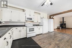 Charming Country Bungalow Minutes from Perth! Welcome to this cozy and well-maintained 2-bedroom, 1-bath bungalow, perfectly situated on a peaceful country lot just minutes from Perth. Featuring a durable metal roof and updated siding this home offers both comfort and functionality with a spacious open-concept kitchen, dining, and living area, complete with a wood stove for added warmth and charm. Enjoy the convenience of main floor laundry and step out onto the large back deck to take in the beautiful views of surrounding fields a perfect space for entertaining or quiet relaxation.The partially finished basement provides great potential for additional living space, whether as a rec room, home office, or storage. A standout feature of this property is the detached 40' x 25' garage with an upper loft ideal for use as a workshop, storage, or recreation area. Also included is a quaint bunkie for guests or hobbies, and a wood shed to keep your stove well-stocked all winter. Additional features: Efficient propane furnace 2012 plus wood stove make this affordable. Included in the sale is a 7500 watt gas generator and a Briggs and Stratton snow blower. Minutes to all amenities in Perth-Perfect for first-time homebuyers, downsizers, or anyone seeking a tranquil country lifestyle. Don't miss this opportunity to own a slice of the country with room to grow! (id:7525)