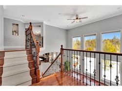 Spectacular Custom Home with Breathtaking Backyard Views Nestled in the heart of sought-after Laurelwood, this custom-built gem offers over 5000 sq. ft. of meticulously maintained living space. A soaring two-story foyer welcomes you into the open-concept living and dining area, adorned with elegant decorative columns and gleaming hardwood floors. The private main-floor office is ideal for working from home. The gourmet eat-in kitchen is a chef’s dream, featuring a walk-in pantry, center island, granite countertops, built-in stove and oven, stainless steel appliances, and ceramic flooring. Step outside onto the spacious 11' x 20' deck and take in the breathtaking views of the protected forest, conservation area, and pond. The expansive family room is open to above, boasting 18-foot ceilings, oversized windows, a cozy gas fireplace, and hardwood flooring. A solid wood staircase leads to the upper level, where you'll find four spacious bedrooms—each with a walk-in closet. The primary suite is a peaceful retreat with serene backyard views, a spa-like ensuite featuring double sinks, a glass walk-in shower, and a jacuzzi tub. One bedroom enjoys a private ensuite, while the other two share a Jack-and-Jill bathroom. The fully finished, above-ground lower level offers in-law suite potential, complete with a living room with a gas fireplace, two bedrooms, and a full bath. Oversized windows and a walkout to a concrete patio fill the space with natural light. A separate private entrance provides added convenience. Located on a quiet, family-friendly street, this exceptional home is just steps from scenic trails, Laurel Heights School, shopping, and transit. A rare find—prepare to be impressed!