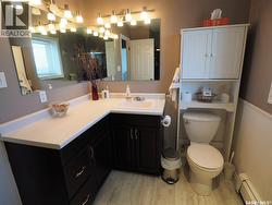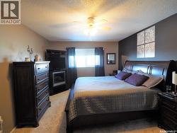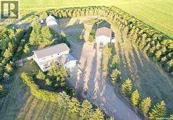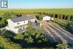 Discover this beautifully developed acreage just a few minutes south of Kindersley! This two-storey home, built in 1981, is situated on a nicely matured yard covering 5.5 acres. Upon entering, you'll find a spacious entryway with ample closet space. The cozy living room features a wood fireplace and patio doors that lead out to the back deck, perfect for outdoor gatherings. The open dining and kitchen area boasts large windows that offer a fantastic view of the backyard. Additionally, there is a second dining area off the kitchen, ideal for large family gatherings, along with another living area for relaxation. Completing the main floor are a three-piece bathroom and a laundry room with a sink. On the second level, there are five bedrooms, including the large master bedroom, which offers a three-piece en-suite and a walk-in closet. A four-piece bathroom finishes off this level. The basement includes a family room, a four-piece bathroom, a sixth bedroom, and plenty of storage space, as well as a utility room housing the boiler, BoilerMate, and water softener. Additional features of this property include being on the town water line, an attached one-car garage, a 1500 sq. ft. shop with in-floor heating and a bathroom, an additional tarp shop, and a large fenced-in backyard. The house also has a new metal roof, installed in 2019. This property is a must-see! Call today to book your personal tour! (id:7525)