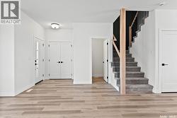 UNDER CONSTRUCTION - Built by Executive Home Builders with great attention to detail and higher than standard finishes. Get in when you can still choose finishes and colours! The main floor is open concept living room and dining room with 9’ ceilings, powder room and a stunning kitchen with quality maple cabinets/quartz countertops and offers an island with additional seating. Great for entertaining! Durable luxury vinyl plank flooring throughout the main. Leading out to your large backyard you will be impressed with the size and functionality of the mudroom including space for a stand up freezer. The second floor has 3 nice sized bedrooms with the primary offering a large walk-in closet plus 3 piece ensuite. A full 4 piece bathroom and laundry room complete the second floor. The basement is open for development and can be finished by the builder. Great location in Warman with a new daycare being built nearby and one of the easiest and quickest commutes to Saskatoon. Pictures are from a previous build with the same layout and same high quality finishes. Estimated completion is February 2026. (id:27)