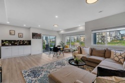 Welcome to this exceptional 6-bedroom, 4-bathroom estate—with a highly desirable main floor bedroom and full bathroom—ideally located on a premium 6,500 sq ft lot with direct access to the serene Bayside canal. Positioned within one of Airdrie's most sought-after neighborhoods, this home masterfully blends refined elegance, contemporary comfort, and luxury, offering an unparalleled lifestyle of sophistication and tranquility.As you approach, you’ll be drawn to the home’s exceptional curb appeal, complete with a triple car garage that balances prestige with practicality. Step inside, and you’ll be greeted by an expansive, open-concept floor plan filled with high-end finishes and thoughtful upgrades.The main level features a stunning living room with a stone-accented fireplace, creating a cozy ambiance for family gatherings. The spacious dining area offers unobstructed views of the canal, providing the perfect backdrop for elegant entertaining. The chef-inspired kitchen is a showstopper, outfitted with built-in premium appliances, a gas range with a hood fan, a large island, ample pantry storage, and a convenient garbage disposal. A main-level bedroom/office and a full 3-piece bathroom add to the home’s functionality, along with a mudroom for added convenience.Upstairs, you’ll find three generously sized bedrooms, two full bathrooms, and a spacious bonus room with views of the nearby playground—a perfect setting for family movie nights. The master suite is truly a retreat, featuring a large walk-in closet and a luxurious 5-piece ensuite with dual sinks, a deep soaker tub, a private water closet, and its own private balcony overlooking the serene canal.The fully finished walkout basement is an entertainer’s dream. With two additional bedrooms, a full bathroom, and a lavish wet bar, this expansive recreation room offers endless possibilities. Large windows allow for an abundance of natural light while providing uninterrupted views of the canal, creating a peaceful setting for both lively gatherings and quiet nights in.Outside, the private backyard oasis awaits, offering direct access to the canal. It is the perfect spot for relaxing mornings, summer evenings, or year-round family fun.This rare gem offers not just a home, but an elevated lifestyle—a harmonious blend of luxury, tranquility, and natural beauty. Homes of this caliber in Bayside don’t last long—schedule your private showing today and make this dream home yours.