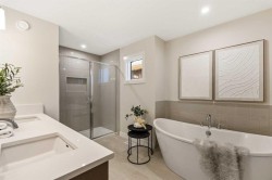 The beautiful Dawson model is a brand new home that features 2 living areas, 3 bedrooms, 2.5 bathrooms and nearly 2,300 square feet of developed living space + an undeveloped basement that awaits your imagination! Located in the heart of Chinook Gate and ideally situated on a large conventional lot with a south-facing backyard, this new home is perfect for a growing family. The double attached garage leads to an expansive mud room that has access to the front of the home and the large walk-through pantry/coffee bar that leads into the kitchen - adding to everyday convenience. The gourmet kitchen is complete with a cooktop, chimney hood fan, built-in wall oven & microwave, and features a central island with additional seating space. The kitchen overlooks the dining area and living room - making this the perfect family home or entertainment space! A central cantilevered gas fireplace in the main level great room is perfect for cozy winter nights. Double patio doors and windows on either side of the fireplace allow for the south-facing backyard sunshine to flow throughout the main living area all day long. The main level is complete with a large foyer, 2 pc powder room and two sets of double closets for ample storage. On the upper level, the bonus room is at the front of the home, overlooking the front street and providing the perfect tv space. The large primary suite is at the back of the home, overlooking the backyard, and is complete with walk-in closet and a 5 pc ensuite including a walk-in tiled shower, soaker tub, double sinks and a private water closet. Two more generous-sized bedrooms, each complete with their own walk-in closets, a full bathroom and laundry room complete the upper level. The undeveloped basement is a clean slate with bathroom rough-ins in place, making future development that much easier! Situated on a conventional lot (not a zero lot-line) that is over 3,700 ft2 in size, with a south-facing backyard, this beautiful new home is perfect for a growing family! This brand new home includes builder warranty + Alberta New Home Warranty - allowing you to purchase with peace of mind in the new community of Chinook Gate.
