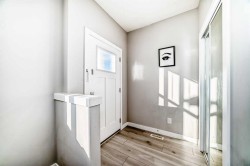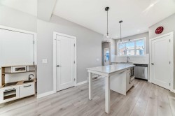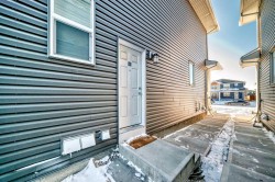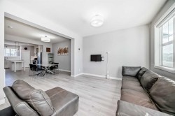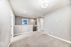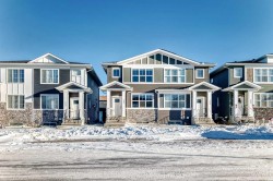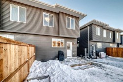 Quick possession Available. This 5 bed/3.5 bath opportunity comes with 2 Bed legal suite currently rented out for 1700 per month. Welcome to this beautifully designed half-duplex featuring a legal secondary suite, situated in the vibrant northeast community of Cornerstone. This property is perfect for families or investors looking for a move-in ready opportunity. The main level offers a bright open-concept layout with a spacious living room, dining area, and a modern kitchen complete with a central island, quartz countertops, stainless steel appliances, and a gas range—ideal for both daily living and entertaining guests. Large windows fill the space with natural light, creating a warm and welcoming atmosphere. Upstairs, you’ll find three well-sized bedrooms, including a primary retreat with a walk-in closet and a 4-piece ensuite boasting a double vanity. This level also includes a second 4-piece bathroom, convenient upper-floor laundry, and a versatile bonus space perfect for a home office, play area, or media room. The legal two-bedroom basement suite features a separate kitchen, living space, 4-piece bathroom, and its own laundry, and is currently tenant-occupied, providing excellent rental income potential. This basement also features high ceilings, noise-reduction insulation, and a fully self-contained setup with its own high-efficiency furnace and independent heat control. Equipped with smoke and CO detectors and a high-efficiency exhaust system, this space offers enhanced safety, comfort, and energy efficiency. Exterior highlights include a rear parking pad with lane access, a level lot, and close proximity to parks, playgrounds, shopping, schools, and major roadways such as Stoney Trail, Country Hills Boulevard. Perfect for generating rental income or accommodating extended family. Situated in Cornerstone, known for its strong rental market and growing amenities, this turnkey property is ideal for both families and investors alike. Book your showing today