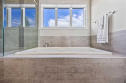 Welcome to 144 Legacy Mount SE an exquisite 2824 sq. ft. detached home in one of Calgary’s most sought-after and family-friendly communities: Legacy. Ideally located across from prestigious Legacy Estate Homes and backing onto a tranquil green space with a playground, this stunning property seamlessly blends elegant design, upscale finishes, and everyday functionality to create the perfect forever home. Step inside and experience a true sense of grandeur. From the moment you enter, you're greeted by 9-foot ceilings, upgraded 8-foot doors, and a show-stopping curved staircase with stylish railings and an open-to-below layout, all illuminated by an abundance of natural light streaming through oversized windows. Throughout the home, hardwood and tile flooring ensure a carpet-free, low-maintenance lifestyle with timeless appeal. At the heart of the home is a two-toned designer kitchen that’s both beautiful and functional. It features ceiling-height white cabinetry, quartz countertops, under-cabinet lighting, and premium appliances including a gas stove, chimney-style hood fan, wine fridge, and a fridge with a water line. Thoughtful touches like hidden sponge storage, a built-in soap dispenser, and strategically placed electrical outlets highlight the attention to detail. The massive central island and walk-in pantry provide exceptional storage and prep space, while the kitchen flows effortlessly into the dining and living areas, offering sweeping views of your private backyard oasis. The cozy living room is anchored by a modern gas fireplace and features built-in speakers, perfect for relaxed nights or entertaining. Step outside to enjoy your 2-tiered cement deck with a BBQ gas line—the ultimate summer setup. Finishing off the main level is a bright home office with double French doors, ideal for remote work, and a spacious mudroom with built-in lockers, leading to the finished double garage, complete with smart storage solutions. Upstairs, a central bonus room smartly separates the luxurious primary retreat from two generously sized bedrooms, offering optimal privacy. The primary suite is a true retreat with a spa-like ensuite featuring dual vanities, ample counter space, medicine cabinet, soaker tub, stand-up shower with built-in bench and dual nooks, a private water closet, and extra linen storage. The expansive walk-in closet comes fully outfitted with custom built-ins and drawers. The two secondary bedrooms each offer walk-in closets with windows and share a beautifully appointed 4-piece bathroom. The upper-level laundry room adds everyday convenience with its utility sink, abundant counter space, lower cabinetry, and ample hanging options. Additional upgrades that are worth noting are central air conditioning, Hunter Douglas Window Coverings Throughout, Built-in Speakers, Ethernet Cat6 Cable in Every Room and Smartphone-Controlled Underground Irrigation System. Don’t miss your opportunity to own this elegant and highly upgraded home!