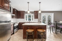 Tucked away on a quiet cul de sac of Edgemont Estates, this unique, original-owner, two-storey home in the established NW community of Edgemont must be seen to be appreciated. A great home for a young family with top rated schools. Soaring, ceilings; a plethora of windows allowing in a flood of natural light; neutral colours; and 1939 sq. ft of living space which includes 4 bedrooms and 2.5 baths is too good to be passed up. Start the tour from the wide, front drive and double, attached, insulated garage and then on to the main level. The living room, dining room, kitchen and breakfast nook are open concept with a combo of tiles and carpet plus a multitude of windows including a bay window in the dining room. The kitchen has everything the aspiring chef needs. An abundance of cabinets; quartz countertops; elegant, white, tiled backsplash; six-burner gas cooktop with overhead fan; large island/breakfast bar for expanded prep area and a second, south-facing bay window over the sink where you can grow your indoor herb garden. Adjacent to the kitchen/breakfast nook is the family room showing off a brick feature wall surrounding a gas fireplace. Imagine those chilly winter evenings gathered here with family. The main level is completed by a laundry/mud room and 2-pc. bath. The carpeted second level features 4 bedrooms. The primary has its own 3-pc. ensuite and the 3 additional bedrooms share a 4-pc. bath with jetted soaker tub. The basement is unfinished and could be your next project. From the breakfast nook access the glass-railed deck and the fenced backyard. The deck is expansive and perfect for summer entertaining. The backyard shows mature trees and shrubs; several raised beds and storage shed for tools and toys. Location here is key with access to multiple routes including John Laurie Boulevard; and Shaganappi, Sarcee, Crowchild and Stoney Trails so getting anywhere quickly is possible. Walking distance to Edgemont disc golf, outdoor rink and playground and John Laurie Park. Proximity to Nose Hill Park; Crowfoot Crossing and Market Mall shops and restaurants; University of Calgary; McMahon Stadium and numerous churches and schools. This home is in immaculate condition and is an opportunity you do not want to miss. The owner has indicated that furniture may be purchased separately. Call today for your viewing appointment.