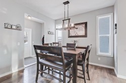 Charm meets convenience in this well-maintained two-storey detached home in Mahogany, offering nearly 1,700 sq. ft above-grade space. In this award-winning 4-Season lake community, residents enjoy exclusive access to 63 acres of water, private beaches, a kids' splash park, 22km of pathway & 74 acres of restored wetlands. Inside, a bright foyer with a convenient front closet and very discreet powder room leads into the open-concept main floor. This sought-after central kitchen design offers stainless steel appliances, a central island with bar seating, granite countertops, a tiled backsplash, ample cabinetry, and generous prep space. A cozy, carpeted den, just off the dining area, complete with large windows and built-in shelving, creates a versatile space for a home office, with enough room for both partners to work from home or use it as a playroom, study nook, or reading spot. The living area is filled with natural light thanks to the oversized windows and features a gas fireplace framed with tile and custom wood detailing. The large mud room is perfect for kids loading and unloading from the oversize deck and garage. This home also includes central A/C for year-round comfort. Upstairs, the primary suite offers a peaceful retreat with a large walk-in closet and a spa-inspired 5-piece ensuite featuring dual sinks with granite countertops, a soaker tub, and a tiled walk-in shower. Two additional bedrooms, a 4-piece bathroom, and a dedicated laundry room with storage space for cleaning supplies complete the upper level. The fully custom-designed and developed basement adds even more living space, including a spacious rec room with a cozy fireplace, an extended wet bar with quartz counters and a brand-new full-size fridge, a comfortable 4th bedroom, and a modern 3-piece bathroom. This $40,000 development also included ceiling sound bars for enhanced sound mitigation. The basement is fully insulated and features abundant storage, including large storage rooms ideal for seasonal items, gear, and household extras. Outside, enjoy an amazing backyard on the street's largest lot, with no neighbours behind you, featuring a large deck, a storage shed, plenty of space to relax, play, or garden, and a nearly 550 sq. ft. double detached garage offering insulated, heated parking and additional storage. The garage is oversized with a valued section perfect for bikes, tools, or game meat. The paved back lane keeps vehicles and garage floors cleaner year-round. The exterior also features Gemstone lights for customizable seasonal lighting. Set in Mahogany, one of Calgary’s most desirable lake communities, this home is close to parks, pathways, shops, dining, and year-round recreation. Own a warm, welcoming home in a vibrant neighbourhood.