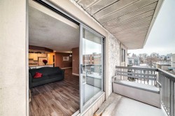 West Hillhurst TOP FLOOR, corner, two bedroom unit in a low rise concrete building with a river view! Super convenient, close to downtown, the University of Calgary, Foothills and Children's Hospitals, and a short commute downtown. Just a short walk or cycle and you're on the Bow River pathway system - less than a block away! Spacious unit (almost 1,000 square feet), with a nice sized south facing balcony and yes there's views of the Bow River. Open concept layout with newly installed LVP flooring (plus new baseboards) and updated lighting in the main living areas. Kitchen is roomy and has a large eat up island with storage AND there's also dedicated space for a dining room. Primary bedroom has a generous closet with tonnes of organizers. Large second bedroom with a mirrored closet and south facing window. This is the only unit in the building with two bathing areas in the bathroom! There's also in-suite storage, a storage locker in front of the parking stall, plus extra storage can be rented if required. Room for everything! Unit comes with an underground heated parking stall and another outside stall can be rented if needed. Riverview Estates is in the process of installing a brand new elevator, plus the fire panel was just upgraded - all well within reserve fund balances. Nearby Sunterra Market and the convenience of the other businesses close by with easy access to everywhere else makes living here a perfect choice!