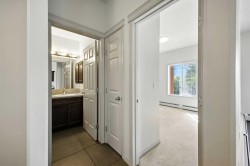 Wonderful, Quiet, Bridgeland location. A 5 Min walk to C-Train, river paths and downtown or hop on the bike path that runs right in front of the building. 2 bedroom, 2 bathroom 3rd floor penthouse corner unit with almost 900 sq ft of living space and a titled underground parking stall with room for storage. This apartment is a bright and cheery space that is freshly painted in light tones throughout, helping the large windows provide lots of natural light. Kitchen is highlighted by dark stained maple cabinets and stainless-steel countertops. An island with pendant lights and a black appliance package gives the entire apartment a luxurious feel. The Livingroom has a corner gas fireplace with a mantle, a big west facing window and French doors that open to the balcony where you will find space to entertain and a gas line for your BBQ. The main living space has 2x2 ceramic tile throughout. The primary is equipped with a walk-in closet and 4-piece ensuite bath. There is an additional 4-piece bath off the Livingroom. The second bedroom has a large west window. There is an in-suite laundry with stacking washer and dryer. This 3rd floor walkup is an idea starter home and will make a great investment. Some photos are virtually staged to highlight decorating options.