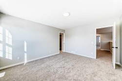**OPEN HOUSE SAT & SUN DEC 20th & 21st 1-4 PM** Introducing the “Carisa” by Hopewell Residential—an exceptionally designed home where smart upgrades, modern finishes, and functional living spaces come together beautifully. Located on a quiet street in the growing southeast community of Rangeview, this home sits on an oversized lot with a east-facing backyard that’s perfect for soaking in morning sun with coffee, relaxing evenings, or entertaining outdoors. An exterior gas line makes it ready for your future BBQ setup. Inside, the main floor greets you with a spacious and light-filled layout, featuring luxury vinyl plank flooring and knockdown ceilings that carry a clean, stylish look throughout. The open-concept design connects the upgraded kitchen, extended Lifestyle room/Dining Room & cozy living area seamlessly—ideal for everyday life and hosting. The kitchen is a showstopper with the upgraded kitchen layout including quartz countertops, upgraded & modern grey cabinetry, a chimney hood fan, built-in microwave, pot lighting & stainless steel appliances. A smartly positioned pocket office near the front entrance offers a quiet, tucked-away space perfect for remote work or homework. Upstairs, a versatile entertainment room is enhanced by an added stairwell window, bringing in even more natural light. The centrally located laundry room adds everyday convenience. The spacious primary suite features a large walk-in closet and a 4-piece ensuite with fully tiled shower walls. Two additional bedrooms round out the upper level, offering great flexibility for families or guests. This home also includes a 9-foot foundation and a separate side entrance—opening the door to future development or potential suite possibilities (A secondary suite would be subject to approval and permitting by the city/municipality). EV charger and solar panel rough-ins are also included, adding future-ready value. If you're looking for a home that balances thoughtful design, upgraded features, and long-term versatility—this one checks every box. Located in Calgary’s desirable southeast, Rangeview is more than just a neighbourhood—it’s a community built around connection, sustainability, and a shared love of food and nature. Inspired by Alberta’s rich agricultural heritage, Rangeview is Calgary’s first garden-to-table community. Residents are encouraged to engage in food growing and sharing through community gardens, orchards, and future culinary events. The community is designed with people in mind: walkable streets, regional pathways, green spaces, and a central gathering area called Market Square, anchored by Harvest Hall—a future hub for farmers’ markets, local food festivals & community programs. You’re also close to Seton and Mahogany amenities, including the world’s largest YMCA, South Health Campus hospital, top-rated schools, and a wide range of shops and restaurants—offering all the urban conveniences within minutes of your doorstep.