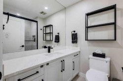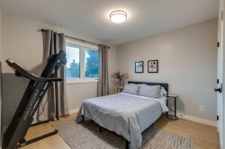 LUXURY RENOVATION | 5 BEDS + 3 BATHS | 4-LEVEL SPLIT | 2,600+ SQ FT OF LIVING SPACE | DOUBLE GARAGE | FACES GREEN SPACEThis completely redesigned and modernized home offers a perfect blend of functionality, style, and luxury in the highly desirable community of Varsity. Ideally located just minutes from the University of Calgary, Market Mall, University District, and the LRT, it provides exceptional convenience for both families and professionals. Rebuilt from the studs up in 2022 the renovation met 2022 building codes with new plumbing, electrical, insulation, heating, and exterior were installed ensuring quality and longevity for years to come.Inside, the main floor showcases an open-concept layout with engineered hardwood throughout and large windows that flood the space with natural light. The contemporary kitchen is a chef’s dream, featuring custom shaker cabinetry, a generous pantry, subway tile backsplash, and a premium stainless steel appliance package that includes a French door refrigerator, gas cooktop, built-in oven and microwave. A spacious quartz-topped island provides extra prep space, breakfast bar seating, and a stylish focal point for gatherings.The inviting living area centers around an elegant inset gas fireplace with a dark tile surround and built-in media unit, creating the perfect place to relax. The adjacent dining area opens through large sliding doors to a large deck and interlocking brick patio—an ideal setting for outdoor dining and entertaining.Upstairs, you’ll find continued hardwood flooring and a stunning primary suite designed for comfort and sophistication. The room features a soft grey accent wall, large window, custom walk-in closet, and a beautiful barn door that leads to the luxurious spa inspired 5-piece ensuite. The ensuite includes a modern double-sink vanity, freestanding soaker tub, and a glass-enclosed shower with. A secondary bedroom overlooks the front yard and green space across the street, while a nearby 4-piece bathroom offers matching quartz counters with a tiled tub & shower combo.The lower level adds even more functional living space with engineered hardwood, three additional bedrooms, a full bathroom, and a stylish mudroom featuring built-in storage and direct backyard access. One level down, a bright and expansive rec room awaits—complete with plush carpeting, a custom media wall, and a wet bar with built-in cabinetry and a beverage fridge perfect for watching the game or movie nights with the family.Outside, the private backyard is fully fenced and opens directly onto Varsity Acres Park—perfect for kids, pets, and outdoor activities. With its prime location, modern updates, and timeless design, this exceptional Varsity home offers the perfect balance of luxury, comfort, and convenience.