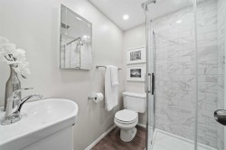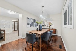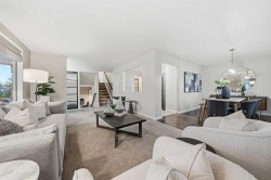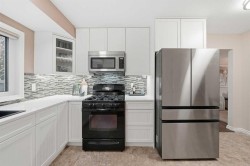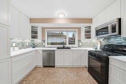 Welcome to this beautifully updated 4-level split home situated on a large corner lot in the desirable community of Dalhousie in NW Calgary. Offering 2,300 sq. ft. of thoughtfully designed living space, this home blends functionality, comfort, and modern upgrades.The main level showcases a beautifully renovated kitchen (2023) featuring push-touch white cabinetry, elegant quartz countertops, a stylish tiled backsplash, and stainless-steel appliances—ideal for both everyday living and entertaining. Bright and spacious living and dining areas provide a functional, family-friendly layout, highlighted by warm hardwood flooring, freshly steam-cleaned carpet, and custom window coverings. Convenient rear access from the kitchen includes a generous closet and a staircase leading to the lower third level.The lower level showcases a thoughtfully renovated family room (2023) with new vinyl windows, a tiled wood-burning fireplace with a raised hearth, and modern vinyl plank flooring, delivering a cozy yet contemporary atmosphere. A laundry cove, full bathroom, and fourth bedroom complete this level, offering versatile options for guests, teens, or a home office.With 4 bedrooms, 2 full bathrooms, and a convenient cheater ensuite, this home offers a versatile layout for growing families. All bedrooms feature new vinyl windows (2023/24), with triple-pane upgrades in the kitchen and primary suite for enhanced energy efficiency and comfort.Major mechanical upgrades include a high-efficiency furnace, humidifier, and water softener, all updated in 2020, providing peace of mind for years to come.A true standout is the oversized 30’ x 26’ triple car garage—ideal for multiple vehicles, a workshop, overhead storage, and additional space for yard equipment. The garage roof was conveniently re-shingled in 2024.Located on a spacious corner lot in a well-established community close to schools, parks, transit, shopping, and major routes, this is an exceptional opportunity to own a move-in-ready home in one of NW Calgary’s most sought-after neighbourhoods.
