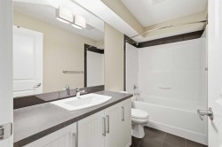 Welcome to 5 Copperstone Villas SE — a beautifully maintained 3-bedroom, 3.5-bathroom townhome offering over 2,100 sq. ft. of developed living space across four fully finished levels. Thoughtfully designed and move-in ready, this home provides exceptional flexibility for families, professionals, or anyone seeking extra room to live, work, and relax. Located in the heart of Copperfield, you’re walking distance to schools, parks, and playgrounds, with groceries, shopping, and transit just minutes away. The main floor features a bright, open-concept layout with a spacious living room, generous dining area, and a convenient 2-piece bathroom. The well-appointed kitchen offers ample cabinet space, a functional layout, and easy access to the rest of the main level — perfect for daily living and entertaining. Upstairs, the second floor includes a large primary bedroom with its own private 4-piece ensuite, along with an additional bedroom and another full bathroom. The third-floor loft is a standout feature — a massive bonus level ideal for a home office, media room, playroom, gym, plus you could even fit a potential fourth bedroom. The fully finished basement adds even more versatility with a third bedroom, spacious recreation room, full bathroom, and a dedicated utility/storage area, making this home suitable for a variety of living arrangements. Additional highlights include vinyl plank flooring, carpeted bedrooms, recent paint touch-ups, and full professional cleaning, including carpet shampooing. Tucked into a quiet pocket of Copperfield, this home offers a peaceful setting while keeping you close to everything the community has to offer. With thoughtful design, generous square footage, and flexible living spaces, this townhome delivers incredible value. Don’t miss your opportunity — book your showing today!