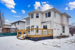 Life really is better by the lake — Welcome to The Cove in Chestermere! This beautifully renovated 2-storey home sits on a large corner lot backing onto pathways and green space, just a short walk to Chestermere Lake, The Cove Beach, parks, playgrounds, and off-leash areas. Set on a generous corner lot, this property gives your family the rare balance of privacy, convenience, and year-round recreation. Walk the kids to the beach, hit the pickleball courts, let the dog run at the off-leash park, or enjoy sunset strolls along the water… all just minutes from your front door.Inside, the house greets you with that WOW moment — soaring 17’ ceilings, the sweeping curved staircase, and oversized windows pouring natural light across brand-new flooring. It’s a true “wow” entrance that sets the tone for the rest of the home. The main floor features a spacious formal living/dining area, a bright kitchen with centre island and pantry, a cozy family room with 3-sided fireplace, and a private main-floor office with French doors. Ceiling to floor Windows in the Family Room provide ample light during the day and gives you an unobstructed view of the backyard. Step outside onto your own private deck for summer BBQs or just relaxation after a long work-week. This house has it all. Upstairs offers 3 bedrooms including a generous primary suite with 5-pc ensuite and walk-in closet. The open-to-below hallway adds light and airiness throughout. The second and third bedrooms are towards the front of the house, with spacious closets, new carpets and light fixtures. The 4 pc bathroom down the hallway is also a master piece and Brand NEW with it's cabinetry, lighting, faucets, counter tops and shower area. The unspoiled basement is ready for your future development with 3 windows and lots of potential.Enjoy a large backyard with deck, concrete patio, and plenty of room for kids, pets, and entertaining.This is an ideal family home in a sought-after lakeside community—minutes to schools, shopping, transit and other commercial amenities. Move-In ready and Quick possession available! Come book your showing today and fall in love with it.