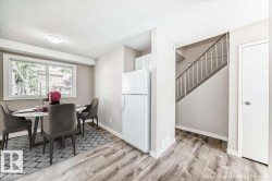For more information, please click on "View Listing on Realtor Website". COMPLETELY RENOVATED. This beautiful end-unit townhouse is the perfect fit for your family. Renovations include new bathtub and surround, new flooring, new kitchen countertops and backsplash, painted in modern colors and more. The main floor offers a spacious kitchen with newer appliances and plenty of room for family dining. The bright and airy living room features a cozy fireplace, creating a warm and inviting space. A convenient 2-piece bathroom completes the main level. Upstairs, you'll find a generous primary bedroom, two additional well-sized bedrooms, and a full 4-piece bathroom—ideal for a growing family or home office needs. Step outside to your private patio, the perfect spot to relax and unwind. Ideally located close to schools, parks, shopping, and just minutes from Henday and Yellowhead for easy commuting. Don’t miss your chance to make this wonderful home yours!