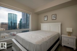 Brand new, never lived in! Perched on the 17th floor with stunning southwest views, this corner unit in Fox Two offers the perfect blend of style, comfort, and location. With 2 bedrooms, 2 full bathrooms, and an open-concept layout, it’s designed for modern urban living. The sleek kitchen features stainless steel appliances, a large island, and stylish finishes, flowing into a bright living space ideal for entertaining. Enjoy year-round sunsets, fireworks from Rogers Place, and views of the Don Wheaton YMCA from your private covered balcony. Located on vibrant 104 Street—home to farmers markets, dining, and festivals—and steps to the Ice District, Brewery District, and the new Valley Line LRT. Includes A/C, in-suite laundry, secure underground parking, and a Bluebox locker system. Downtown living at its best!