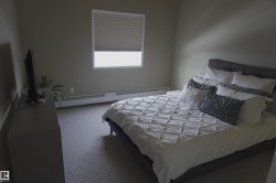 Welcome to this top floor Jefferson Lofts condo. A bright open loft with 17 ft ceilings. The living room features a natural gas fireplace, dining area offers extra built in shelving, and spacious open kitchen. Master bedroom has a massive walk thru closet and 4 piece ensuite. The loft area can be used as a second bedroom or versatile work/bonus space. You also have a second bathroom and in-suite laundry. One underground titled parking stall. Walking distance to Macewan, Rogers Arena and Ice District. You have to check this one out.