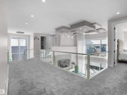 This exquisite 6-bedroom, 6-bathroom home offers high-end finishes & exceptional design. Features 2 full kitchens on the main level, a wet bar in the basement, & a heated triple-car garage with sink, drainage & EV charger. Grand double-door entrance, spacious foyer, and great room with feature fireplace. The chef’s kitchen includes Huge U shape island with raised bar, quartz countertops, JennAir Downdraft Vent, under sink Vroom for kitchen and behind the cabinets it leads to hidden spice kitchen, Hidden 2nd fridge & concealed mudroom. Dining nook opens to an extended deck—perfect for entertaining. Upstairs: 4 bedrooms with ensuite access, balcony & laundry. The primary suite features a spa-style ensuite with heated floors and walk-in dressing room. The finished basement includes a rec area, bar kitchen, 7.1 home theatre System, bedroom & full bath. completed with Central A/C, sound system and Hide-A-Hose central vacuum on all floors, garburator, premium flooring, JennAir paneled fridge freezer.