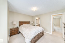 This immaculate freshly painted end unit townhouse has an incredible design with over 1,500 sqft of living space. It features a large living room with a 9 foot ceiling, lots of natural light, and a spacious kitchen equipped with stainless steel appliances, granite countertops, very large island, built in buffet with a wine cooler, and a pantry. This floor also has a 2 piece bathroom and a large deck. Upstairs you will find two spacious primary bedrooms with two full bath ensuites and plenty of closet space. The washer and dryer are conveniently located in the upper floor. Other bonuses included are the double attached garage, a central A/C for hot summer days and a window in the ensuite. The amenities include a clubhouse (social room and gym), visitor parking, lake access and more. Located in Walker Lakes only minutes from south common and the international airport. Move in ready!