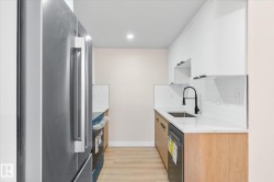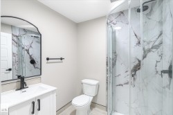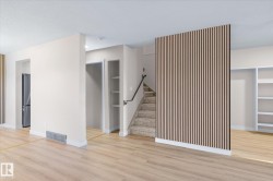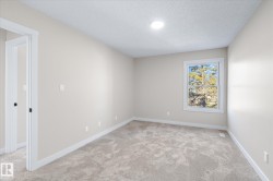 Beautifully renovated corner unit featuring 3 bedrooms, 2.5 baths, and a fully finished basement. The main floor offers a brand-new kitchen with stainless steel appliances, modern finishes, and a cozy electric fireplace. Upstairs includes 3 spacious bedrooms with custom closets and an updated 4-piece bath. The basement features a cozy family room, a dedicated entertainment room, a 3-piece bathroom, and a convenient laundry room. Recent mechanical upgrades include a brand new hot water tank and a high-efficiency Coleman furnace installed a few years ago. Additional features include new flooring and fresh paint throughout, updated interior doors, custom closet organizers, a brand-new kitchen with stainless steel appliances, and fully modernized bathrooms.Enjoy a fenced backyard and a convenient location close to schools, parks, WEM, and transit a perfect move-in-ready home.