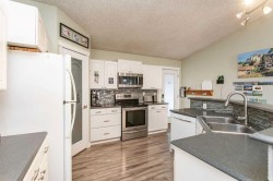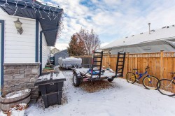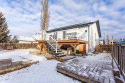 Welcome to this spacious 1520 sq ft family home in the desirable Iron Wolf community of Lacombe. Designed for comfort and room to grow, this property offers 5 bedrooms (3 up/2 down), main floor laundry, and a bright, functional kitchen with an abundance of cabinetry and a corner pantry.The lower level features in-floor heat, a generous family room, and a den with French doors—perfect for a home office, hobby room, or quiet retreat. Numerous upgrades include new windows (2025) and solar panels, adding long-term efficiency and value.Step outside to a beautifully landscaped yard complete with fruit trees (Saskatoon & plum), a large deck with gas line for BBQ, a patio block firepit, and a dedicated pad for a future hot tub. The rock side yard provides oversized RV parking, and the attached heated garage adds year-round convenience.A welcoming home with thoughtful features throughout—ready for its next family.