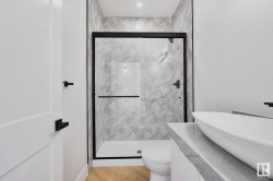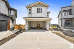 This upgraded home offers over 2,000 sq ft of well-designed living space with quality finishes throughout. The main floor features a modern kitchen, a convenient spice kitchen, a bedroom, and a full bathroom. Upstairs includes a spacious primary suite with 5-piece ensuite, two additional bedrooms, and a bonus room. Interior highlights include glass railings and no carpet on the main and upper floors (carpet only on stairs). A separate side entrance to the basement provides potential for future development. Located in a quiet cul-de-sac with easy access to Highway 2, Edmonton International Airport, and nearby shopping and amenities.