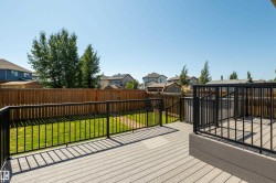 Affordable comfort in desirable Southfork! Ideal for families & first time buyers, this home offers CENTRAL A/C, over 1300 sq ft of living space, 3 beds, 2.5 baths, main floor laundry & a sunken living rm with 9' ceilings! This bright & airy home has been recently updated with BRAND NEW CARPETS upstairs and FRESHLY PAINTED walls, doors & trim! Entertaining is a breeze in this open concept layout, featuring well-sized rooms and an ISLAND KITCHEN! Upstairs you'll find a sprawling primary suite with a WALK-IN CLOSET & 4 pc ensuite, 2 additional bedrooms and the main 4 pc bath. Step outside into the sunny south-facing FULLY FENCED BACKYARD and soak in the sun on a two-tier COMPOSITE DECK (2023) spanning over 330 sq ft with 3 power outlets! Out back you'll find ample off-street parking for multiple vehicles or even your boat or RV! Opportunity awaits for you to build your future garage or develop the unfinished basement. All this and more just steps from playgrounds, schools, shopping & the community garden!
