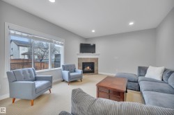 VA-VA-VA VOOM! Look at this big beauty! This 2,275 ft² 2-storey, AIR-CONDITIONED home has 4 bedrooms, 3.5 baths, HUGE bonus room, finished basement + double attached garage! Spacious living room has big sun-filled windows with GAS fireplace. The chef’s kitchen includes GORGEOUS black GRANITE countertops, beautiful dark cabinets, STAINLESS STEEL appliances, pantry + breakfast nook overlooking the WEST-FACING BACKYARD! Built-in speakers throughout! Upstairs you’ll find a HUUUGE bonus room, a dreamy primary bed with 5-pc ENSUITE including SOAKER TUB + WALK-IN CLOSET + 2 more beds and full bath. FULLY FINISHED BSMNT has a FAMILY/REC ROOM, 4th bed with 3-pc ensuite, and (shhhh …) a fun secret hidden space behind the bookshelf! Yard has LARGE DECK + GAS FIREPIT (no wood or mess)! Close to Father Leduc (K-8) school, Steps to parks, trails, pond, skating rink & minutes to Hwy 2A, QEII, EIA, Nisku, Costco, Outlet Mall, Amazon, and only 15 minutes to Edmonton! Incredible home, incredible location! So much to love!