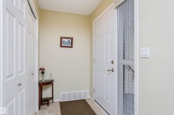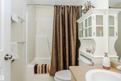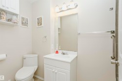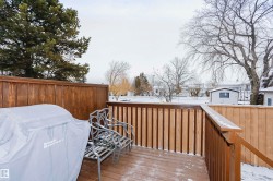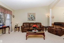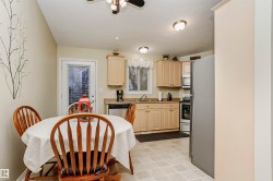 RARE FIND!! Great chance to own a Charming Bungalow in a peaceful 45+ Condo Complex in Morinville. This fully finished home offers two spacious bedrooms upstairs and one large bedroom downstairs, along with two full bathrooms. The living room features an archway leading to a bright eat-in kitchen boasting Stainless Steel Appliances and garden doors leading out to a small deck with a Natural Gas BBQ, some green space and a small patio. Enjoy the convenience of main floor laundry and a roomy entrance. The basement includes a cozy family room, third bedroom, a good size cold room, plus a huge walkthrough storage area. An insulated single attached garage tops off this ideal home! Use of the common areas as well including the community room. Come take a look today!
