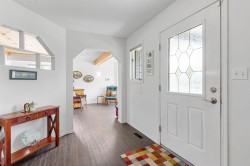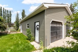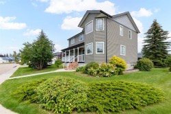 Welcome to your lovely, 3 bdrm, 2 story house is situated on a desirable corner lot, directly across from a serene park. This home is ideal for families with children, as you are close to 2 schools, and busing is provided from these schools to both Elementary and High School. You will find a perfect blend of comfort, style and natural beauty, that creates a unique opportunity to embrace a tranquil yet convenient lifestyle. You will love the open plan which is perfect for large family and friend gatherings. Upper floor boasts 3 large bedrooms with walk in closets and 2 bathrooms. Enjoy a quiet moment on the wrap around front veranda, or have a BBQ on the rear deck, complete with mobility lift so everyone can join in the fun. This home also features an oversized rear, detached garage, big enough to hold vehicles, toys and still have a workshop. Recent upgrades during the past few years include replacement of all polyB to pex (2023) exterior siding (2017), hot water tank (2019), shingles (2013), renovated primary ensuite, closet system (2017), flooring on main (2020), furnace (2022), living room fireplace converted from gas to electric (2025) some new appliances, some new window glass, all blinds and window screens are new or added, as well as many other items. This amazing home has been very well maintained, and is move in ready. Do not delay, view today!!!