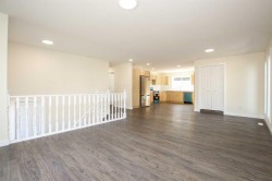 IMMEDIATE POSSESSION AVAILABLE ~ FULLY RE-BUILT HOME ~ 4 BEDROOM, 3 BATHROOM BI-LEVEL WITH OVER 1300 SQ. FT. ABOVE GRADE ~ WALK-UP BASEMENT W/SEPARATE ENTRY ~ BACKING ONTO MATURE TREES & SIDES ON TO A WALKING TRAIL ~ Sun filled entry welcomes you to this brand new, move in ready home ~ The open concept layout is complemented by vinyl plank flooring to create a feeling of spaciousness ~ Floor to ceiling bay windows in the expansive living room overlook the front yard and allow for natural light to fill the space ~ Easily host large gatherings in the dining room floor to ceiling windows offering more natural light ~ The spacious kitchen offers an abundance of soft close cabinets with oversized drawers and built in pantry, tons of counter space, full tile backsplash, window above the sink overlooking the deck and backyard, plus brand new stainless steel appliances ~ Separate entry from the kitchen leads to a wrap around deck that overlooks the backyard and has enclosed storage below ~ The primary bedroom can easily accommodate a king size bed plus multiple pieces of furniture, has dual closets, a 4 piece ensuite, and sliding patio doors to the deck ~ 2 additional main floor bedrooms are both a generous size and are conveniently located across from the 4 piece main bathroom ~ The fully finished basement with high ceilings offers a spacious family room, 4th bedroom, 4 piece bathroom, laundry (with new front load laundry pair), and a separate entry with walk up access to the backyard ~ Double attached garage is insulated and finished with painted drywall ~ The fully fenced backyard has enclosed storage below the deck plus a garden shed, fire pit, plenty of grassy yard space and mature trees offering shade and privacy ~ Beside and backing on to a walking trail and treed green space that connects to more trails, green space, parks, playgrounds and outdoor fitness area ~ Easy access to multiple schools, rec centres, transit and tons of shopping with all amenities ~ Home was rebuilt in 2023 with work completed by DKI - Central Alberta and includes the balance of the Alberta New Home Warranty Program.