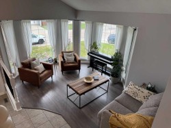 Welcome to your dream home—a beautifully renovated 4-level split that seamlessly blends modern elegance with everyday comfort. Spanning an impressive 1,720 square feet, this residence is a true gem that boasts an array of exquisite features designed for both relaxation and entertainment.As you step inside, you'll be greeted by the fresh ambiance created by all-new flooring throughout the home. The heart of this property is undoubtedly the brand-new kitchen, featuring sleek cabinetry and state-of-the-art appliances that will inspire your inner chef. Imagine whipping up culinary delights while enjoying the open flow into the spacious dining area—perfect for hosting family gatherings or intimate dinners.The inviting family room is adorned with a cozy gas fireplace, providing warmth and charm on chilly evenings. With three generously sized bedrooms and three bathrooms (2 of which are beautifully renovated), there’s ample space for everyone to unwind in style. The large rec room in the basement offers endless possibilities—transform it into a game room, home theater, or personal gym!Step outside to discover your private oasis: a newly designed patio area complete with a firepit—ideal for summer barbecues or stargazing nights with friends and family. The fenced backyard ensures privacy while providing a safe haven for children and pets to play freely.Additional highlights include new shingles for peace of mind, a new hot water tank ensuring efficiency, and some updated windows that enhance energy savings. The double attached garage adds convenience to your daily routine.Located just moments away from downtown amenities and schools, this property combines suburban tranquility with urban accessibility—making it perfect for families or professionals alike.Don’t miss out on this exceptional opportunity!