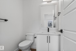 BRAND NEW Townhome with NO CONDO FEES. Open concept floor plan features a spacious living room with electric fireplace, complete with an accent wall. Upgraded ceiling height kitchen cabinets with quartz countertops and soft-close drawers. A nook overlooking the backyard and a 2-piece powder room complete the main floor. Upstairs, the master bedroom features a 3-piece ensuite and Walk-In Closet. 2 additional good sized bedrooms, a bathroom and laundry room complete this level. SEPARATE ACCESS to the basement, plus a DOUBLE DETACHED GARAGE. Modern Details include: MDF shelving throughout, luxury vinyl plank, upgraded backsplash and premium lighting package. This community is conveniently located just 10 minutes away from the City of Edmonton and has direct access to Highway 16A. Close to all amenities.