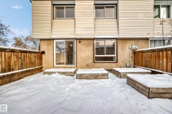 Renovated end unit with many improvements! 3 Bedrooms, 1.5 Bath. Already done: new roof ( 2024) windows done (2021), new dishwasher (2024), new HWT (2023), new recessed lighting, newer paint and flooring throughout! New garage door opener with WIFI! (2024). Nice vibe and layout for this well-located townhome in desirable St. Albert! First-time home owners will love the affordability of this almost 1300 square foot home with an attached single garage. Blank canvas in the basement, customizable for your needs. Enjoy a lovely, sunny and south-facing fenced backyard with raised garden beds & patio. Pets possible with board approval. Put down roots here, welcome home! ( some photos virtually staged)
