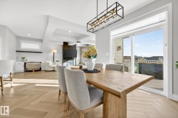 Every detail of this Erin Ridge North lake home feels intentional—crafted for those who love light, flow, and effortless elegance. From the sunlit herringbone floors to the designer kitchen with quartz surfaces and a walk-through pantry, every space invites you to linger and connect. The living room glows with warmth from a sleek fireplace and expansive windows framing tranquil water views. Upstairs, the primary suite feels like a private spa with a soaker tub, glass shower, and generous closet, while two additional bedrooms and a luminous bonus room add comfort for family or guests. The walkout basement extends your lifestyle with a wet bar, rec area, and access to the covered patio, where peaceful lake views set the tone for quiet mornings or sunset gatherings. With low-maintenance landscaping, a deck off the dining area, and a seamless blend of modern design and timeless warmth, this home also features a heated garage—an ideal space for hobbyists, projects, or year-round tinkering.