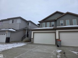 IMMEDIATE POSSESSION. This newly built 2-storey half duplex by Alquinn Homes offers exceptional value backing greenspace and a deck already included. The main floor showcases a contemporary open-concept design that seamlessly connects the kitchen, dining, and living areas—ideal for both everyday living and entertaining. The modern kitchen is thoughtfully appointed with a central island, breakfast bar, walk-in pantry, and refined finishes throughout. A practical rear mudroom adds convenience with a built-in bench and cubbies. Upstairs, enjoy the flexibility of a bonus room alongside upper-floor laundry, 2 additional bedrooms, and a full bathroom. The primary suite is a private retreat, featuring a spacious walk-in closet and a beautifully finished 5pc ensuite with elegant fixtures. UPGRADES: deck, fully fenced yard, upgraded appliances, triple-pane windows, upgraded flooring, MDF shelving throughout, double closet doors, soft-close cabinetry, sill granite sinks, and more. *Photos are representative*