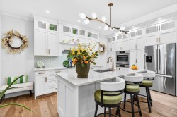 An extraordinary end-unit townhome in sought after Rosehill Estates, this fully renovated executive residence blends timeless sophistication with modern comfort. Sunlit interiors—enhanced by expansive windows, 3 skylights & refined colour palettes—vaulted ceilings, hickory floors, couture lighting, crown mouldings & custom millwork to name a few. The gourmet kitchen boasts high-end appliances, soft-touch cabinetry, wall-mounted ovens & an elegant enclosed deck. A glass-railed staircase, beautifully renovated bathrooms, electric blinds, generous storage, sliding doors to the lush yard, & parking for 4 complete this impeccable, magazine-worthy home. This won’t last long. Truly superb! Viewings only by appt.