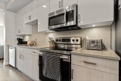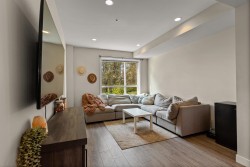 Trail access from your backyard?! YES PLEASE! This spacious 3 Bed 4 Bath townhome in Midtown offers nearly 1,800 sqft with a BONUS rec room + washroom below. Soaring 11 ft ceilings and floor-to-ceiling windows bring in tons of natural light. The kitchen stuns with a massive island, quartz counters, tile backsplash, and sleek S/S appliances. Step out to greenspace and walking trails—ideal for pets, kids, or peaceful strolls. Close to schools, parks, shopping + quick Hwy 1 access. Pet friendly complex with 2 pets allowed (no size limits!) Book your private tour today!