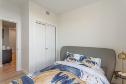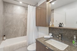 Beautifully updated 2 BED & DEN at the Alina in Coquitlam, offering an ideal location and stunning VIEWS. Professionally upgraded by A2H Design, it’s the ONLY suite with premium upgrades incl. designer lighting. Floor-to-ceiling windows frame unobstructed VIEWS of City and Mountains. The kitchen features mid-century inspired cabinetry, SS appliances incl. gas range. Enjoy a covered 220 SF wrap-around deck, split BED layout for privacy, and a DEN that can serve as a 3rd BED or office. The ensuite showcases a walk-in glass shower and modern finishes. Includes 2 Parking, Storage, access to a 6-level parkade, bike storage, EV charging, pool & hot tub. Steps to SkyTrain, shops, dining, parks and trails. BONUS: Furniture can be included with sale. Shown by appointment.