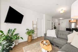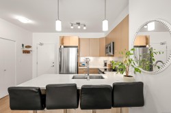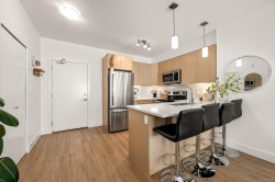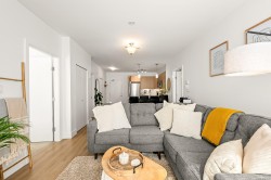 This bright and modern 2 bedroom, 2 bathroom condo offers over 900 sqft of comfortable living in a fantastic central Courtenay location. Built in 2019, the home has been well cared for by its owner and features an open concept floor plan with a stylish kitchen, stainless steel appliances, and plenty of cabinet space. The living area is filled with natural light and opens to a generous south-facing patio, perfect for enjoying the sunshine. The spacious primary bedroom includes a walk-through closet and private ensuite, while the second bedroom and full bathroom provide flexibility for guests, family, or a home office. Additional highlights include in-suite laundry, secure underground parking, and a well-managed building with modern design and elevator access. Within walking distance to shopping, restaurants, cafes, transit, this home is ideal for first-time buyers, down sizers, or investors looking for a low-maintenance property in a desirable location.