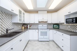 Welcome to “On the Park,” a well-kept 55+ community steps from Centennial Park. This bright & welcoming top-floor condo offers 1,139 sq ft with 2 bedrooms and 2 full bathrooms, including a spacious primary bedroom w/its own ensuite. The southern exposure brings in beautiful natural light, enhanced by vaulted ceilings & a cozy gas fireplace making the living area feel warm & open. The kitchen has been tastefully updated, & most flooring has been refreshed. A large deck off the living area, also accessible from the primary bdrm, provides a sunny place to relax. The home includes in-suite laundry & all appliances. Residents enjoy a storage locker (when available), bike/scooter storage, and exercise/multipurpose rooms. Pets are welcome with 2 cats or 1 small dog (up to 6.8 kg). The location is hard to beat right next to Centennial Park & an easy, level walk to shops, cafés, & services in downtown Duncan. A comfortable top-floor home in a friendly, walkable community.