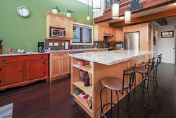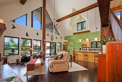 This residence boasts a distinctive post-and-beam design, offering both beauty and individuality rarely found in conventional homes. The expansive, covered front deck provides an ideal setting for entertaining guests while enjoying panoramic views of the Rocky Mountains. Designed as an exceptional mountain retreat, the home emphasizes comfort, connectivity, and versatility. Features include soaring vaulted ceilings, elegant hardwood flooring, a chef-inspired kitchen equipped with granite countertops, stainless appliances, and a large island. The main floor’s open layout seamlessly transitions into a great room highlighted by a striking stone fireplace, creating an inviting space for family gatherings or relaxed evenings. The loft level presents a dedicated landing suitable for a sunlit home office or creative workspace, leading to a tranquil primary suite complete with vaulted ceilings and a private balcony. The spa-like, 5-piece ensuite features a jet tub promoting year-round wellness. There’s a beautiful main-floor bedroom with an ensuite. More adaptable spaces provide privacy and flexibility for family members or guests, while the lower level accommodates hobbies, fitness activities & a soothing sauna. In-floor heating and an appointed mudroom further enhance the seamless integration between indoor and outdoor living. Ideal for retirees, active families, or individuals seeking a refined balance of luxury and practicality, and all within a dynamic and picturesque community.