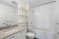 Welcome to Belmont Residences! This bright 1,105 sqft corner unit offers 3 bdrms/2 baths and includes two rare parking spots. The primary suite features a spa-inspired ensuite and walk-in closet. Large windows fill every room with natural light, and the open-concept layout showcases a gourmet kitchen with a spacious island, SS appliances, gas cooktop, ample storage, and a patio with BBQ hookup. With no shared walls except within a closet, this home feels exceptionally private. Additional perks incl. a heat pump, in-suite laundry, and dedicated storage. Building amenities feature a terraced patio with BBQ, firepit lounge, kayak and bike storage, pet wash station, and access to the Belmont Club. Steps to Belmont Market, the Galloping Goose Trail, and transit, this walkable community offers a vibrant, connected lifestyle in a prime location. This walkable neighborhood offers an active urban lifestyle with vibrant local amenities & community spaces designed for connection & easy commuting!