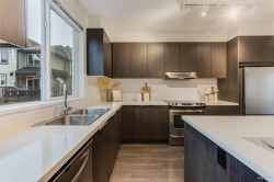 POLYGON - Ashbury & Oak. Beautiful 3 Bed + Den (4th Bed) / 3 Bath townhome featuring a bright, spacious open-concept layout with 9' ceilings. The ground floor offers a den conveniently located by the front entrance-ideal as a 4th bedroom or a perfect home office for a home-based business. Double side-by-side garage and a fully fenced, oversized front yard for added privacy and outdoor enjoyment. Enjoy an impressive 8,000 sq.ft. resort-style clubhouse with outdoor pool, hot tub, fitness centre, billiards, pet washing station, kids' playroom, and guest suites. Upgrades include brand new carpets and a new fridge. Prime location within walking distance to R.E. Mountain Secondary (IB Program), Yorkson Creek Middle, Lynn Fripps & Uplands Elementary, plus Carvolth Bus Exchange, Town Center.